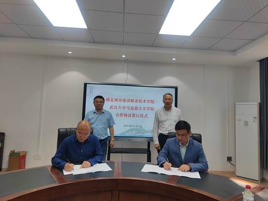 2023年11月2日,湖北城市建设职业技术学院(下文简称“湖北建院”)党委书记程超胜一行到访麻豆做爱 ,就湖北建院与武大马院开展合作进行调研座谈。湖北建院副校长易操、马院院长李颖芳、教学干事江杨,武大马院党委书记罗永宽、党政办主任杨辉参加座谈会。座谈会由武大马院副院长陈世锋主持。