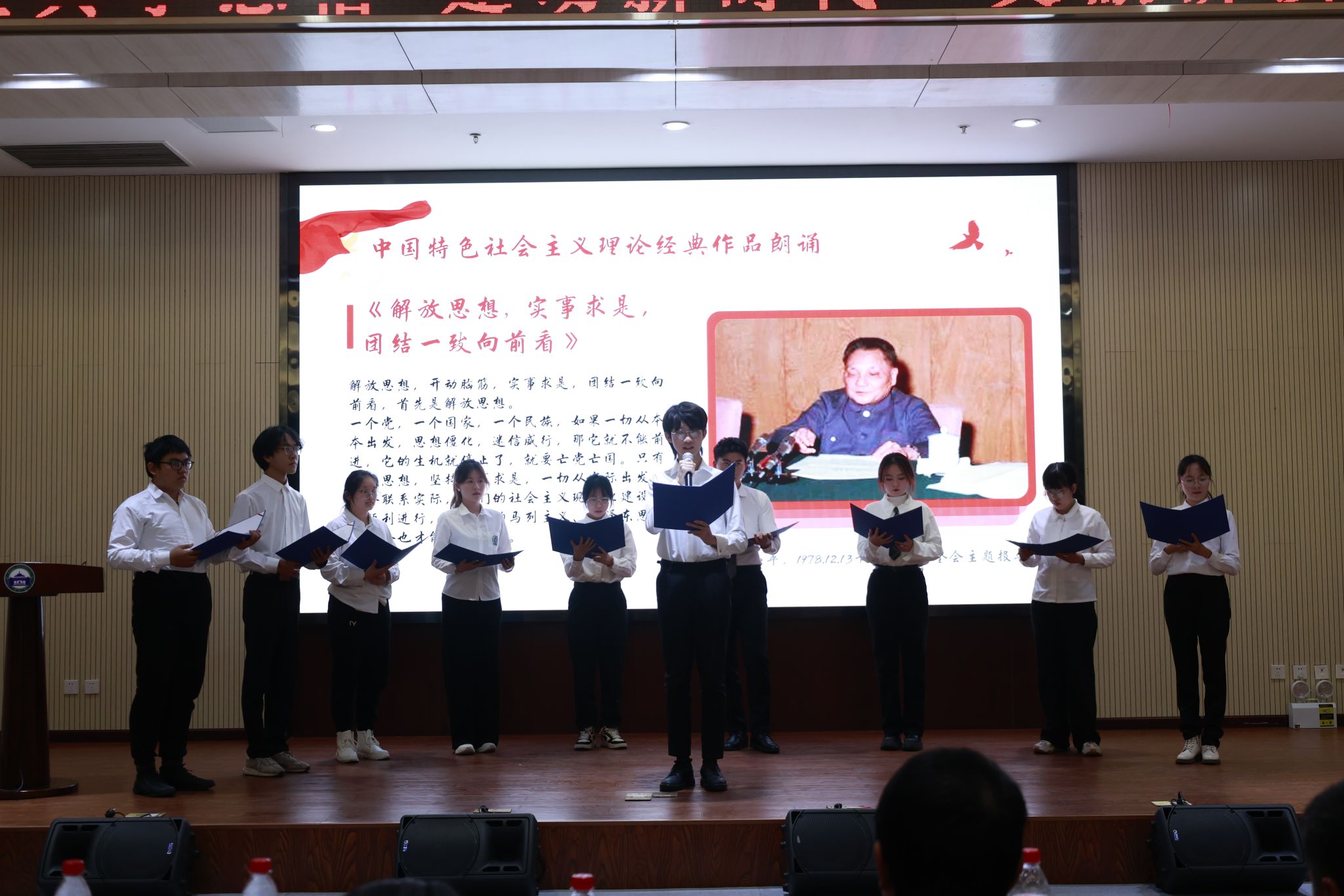 的刘怡麟等10位同学朗诵《解放思想,实事求是,团结一致向前看》等经典文献选段。
