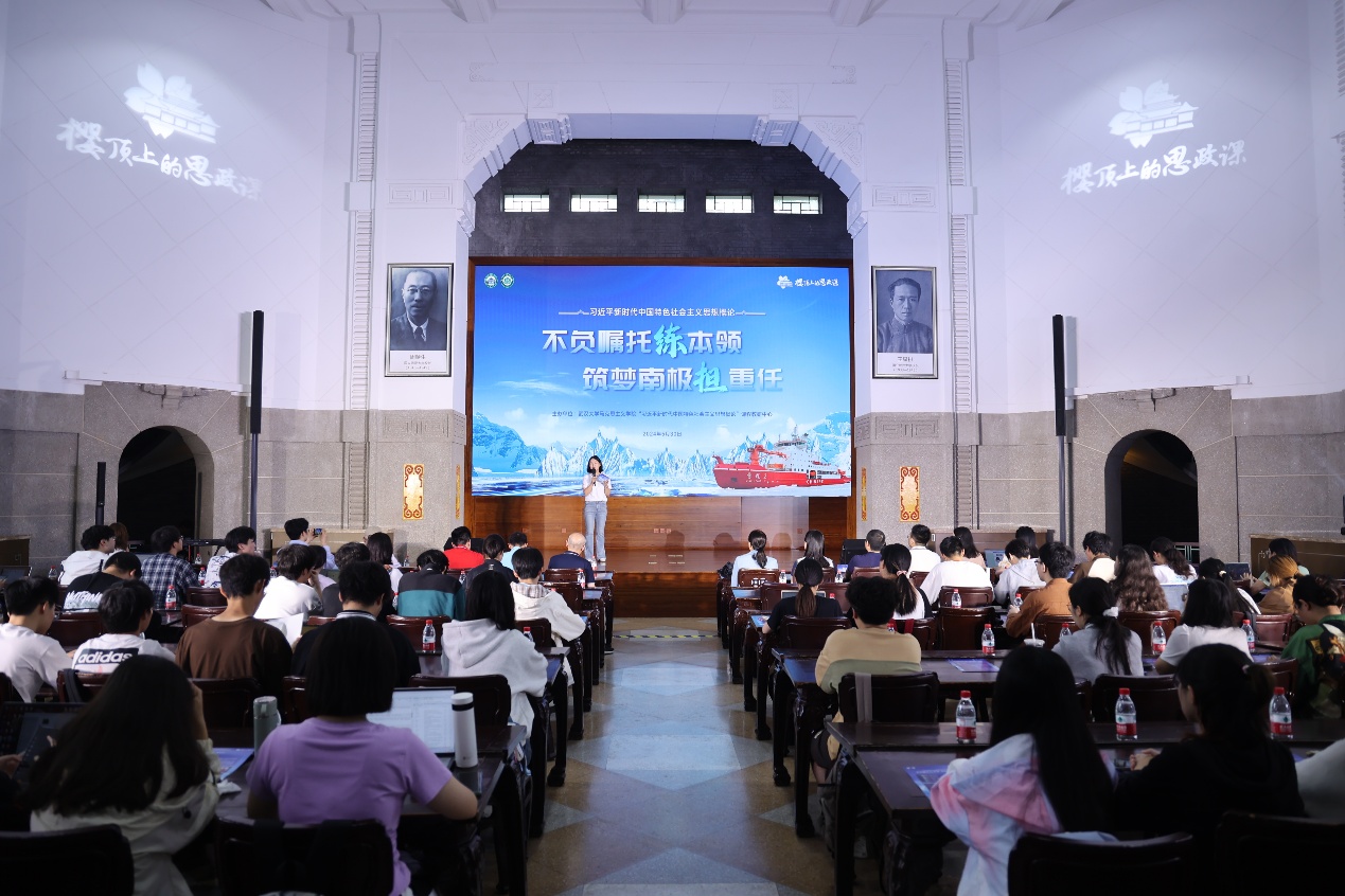 负责人,“习近平新时代中国特色社会主义思想概论”课程教研中心教师代表、各学院2022级本科生代表等120余人参加现场活动,共同感悟武大人的家国情怀与极地梦想。活动由课程教研中心主任任艳主持。