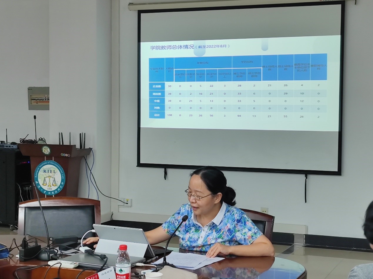 孙燕汇报了学院近五年人才工作的总体情况,并从学院专任教师情况、青年教师引进情况、职称晋升情况、未来三年退休人员情况、现有人才情况、人才工作存在的问题及已经采取的举措等八个方面进行了详细分析。