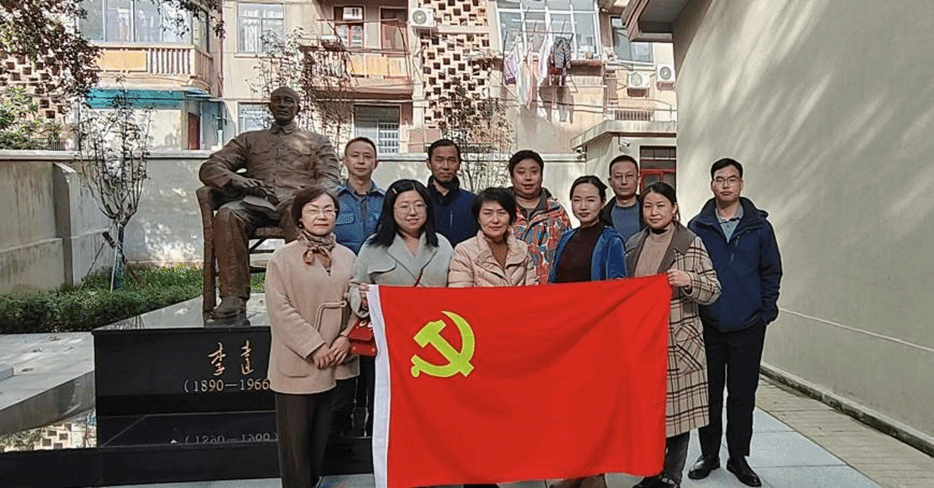 (支部成员于李达雕像前合影)